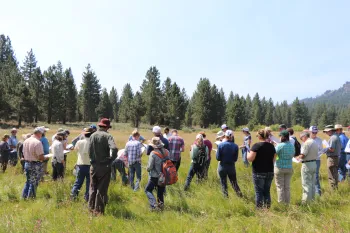On July 24 2018, UCCE Plumas-Sierra and UC Rangelands hosted the 2nd Rustici Rangeland Tour on the Beckwourth Ranger District for more than 60 attendees on the Plumas National Forest. The event created a venue for local forest staff, agency leadership, grazing permittees, and other regional stakeholders to discuss contemporary research, management, and monitoring for sustainable public lands grazing. The Rustici Rangeland Tour was established as part of the Rustici Rangeland Science Symposium series to bring hands-on extension education opportunities to local resource managers and stakeholders in a field-based setting.