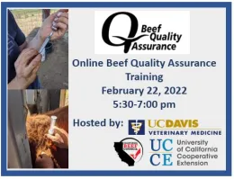 UC Cooperative Extension and UC Davis School of Veterinary Medicine in collaboration with the California Beef Council hosted an online Beef Quality Assurance Training and Certification. The online training included presentations on antibiotic stewardship, vaccine administration and handling, record keeping, and carcass quality.  There was also a Question and Answer session with Dr. Gabriele Maier, DVM, Cooperative Extension Specialist in Veterinary Medicine, UC Davis.
