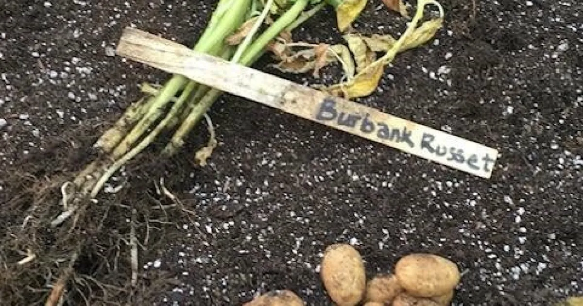 Harvest your potatoes once their vines die, approximately 90 to 120 days after planting. Carefully empty the bag, plants, soil and all, to unearth your potato bounty. Brush off most of the soil, then store the potatoes in a cool, dark place.