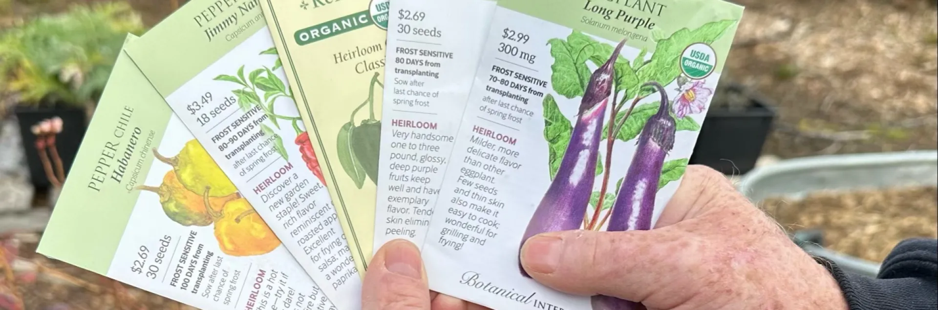Seeds planted in the Edible Demo Garden must be organic certified. Organic seeds are from plants grown in compliance with federal standards which exclude the use of synthetic fertilizers, pesticides, and genetically modified technologies. Seed choices for the Demo Garden are often based on the descriptions provided by organic seed companies and it’s up to the volunteers to determine which varieties seem well suited for the garden conditions and promise the best taste.