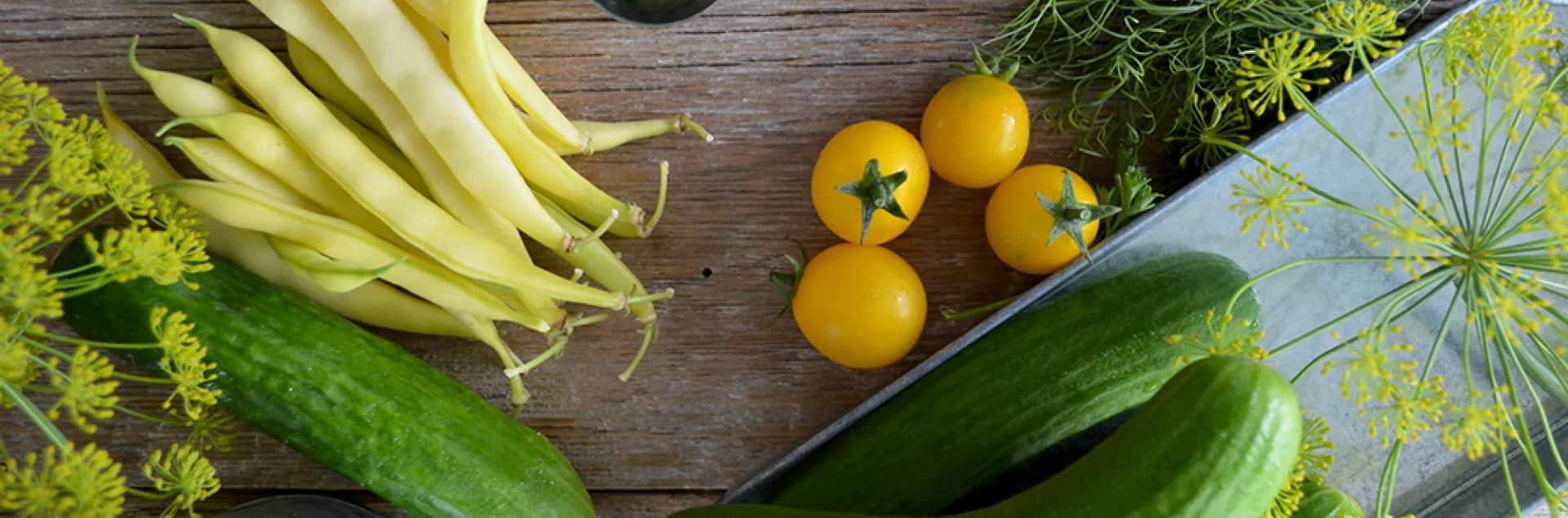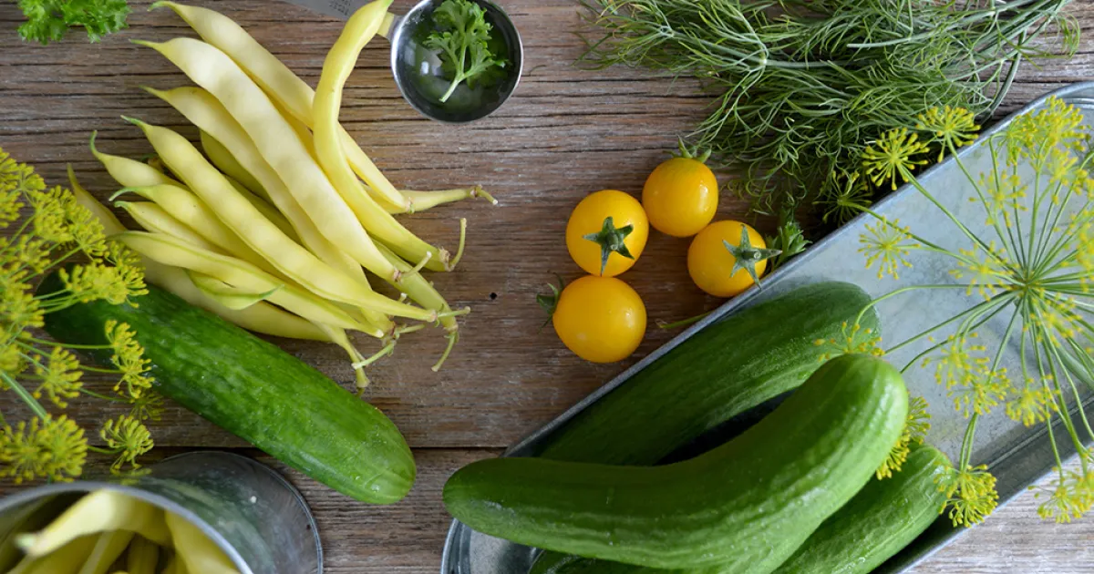 Cucumbers: Pick slicing types when six to nine inches long and pickling types between two to six inches. They should be bright green and firm.