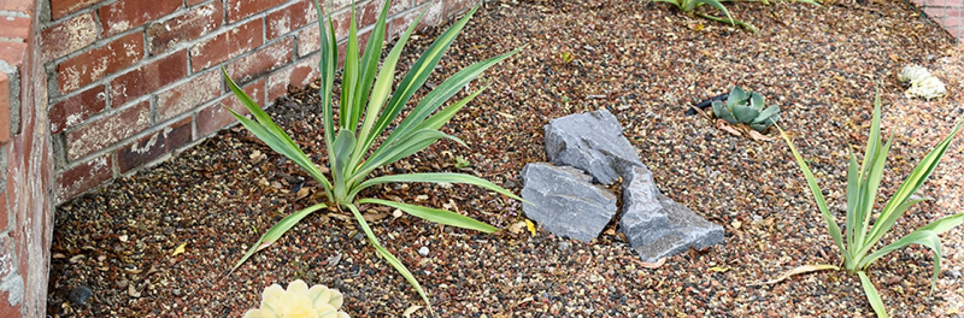 • Create fuel breaks by dividing areas of combustible mulch and plant groupings with non-combustible mulch or hardscaping