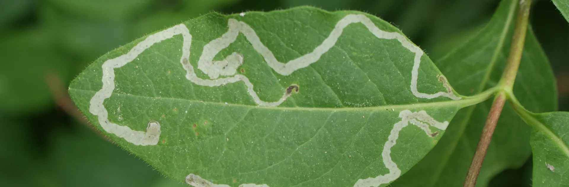 Leafminer larvae attack many vegetables and ornamentals. Male and female flies pierce leaves and suck sap. Female lays eggs between the leaf layers. When the larva hatches, it uses its mouth parts to rupture plant cells, weaving trails through the leaf. These trails are called mines.