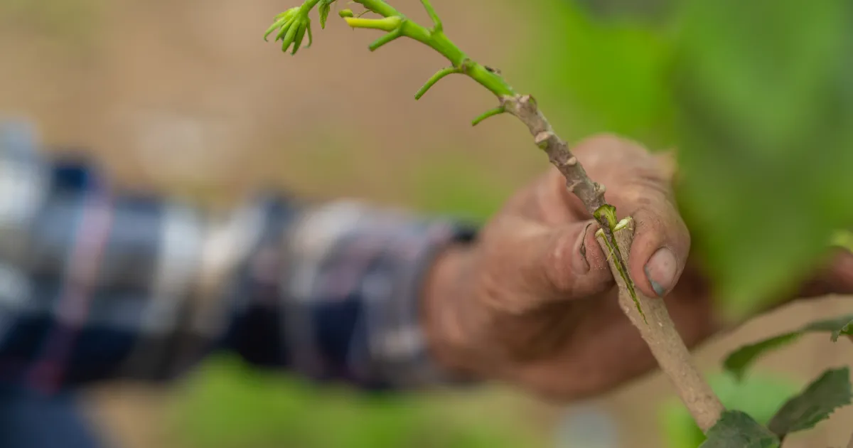 To create a graft, cut a short section of a tree shoot and insert it into the limb or trunk of a seedling tree. To ensure the graft union heals properly, you must tightly hold the two parts together and secure: