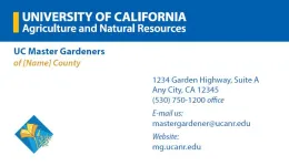 UC ANR and UC Master Gardener Program templates are available through the UC ANR Communications Toolkit. All county-based programs are encouraged to use the following branded marketing templates and Canva templates. Let us know if you have any issues with the templates or if there's something you'd like us to create as a template.