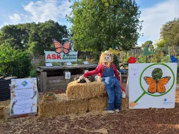 Also repurposed from the county fair was our “photo booth”-- a 4’x4’ painting of a monarch butterfly on plywood, with a large hole cut out for visitors to poke their heads through for a quick snapshot. Adults, as well as children, had fun posing as a butterfly.