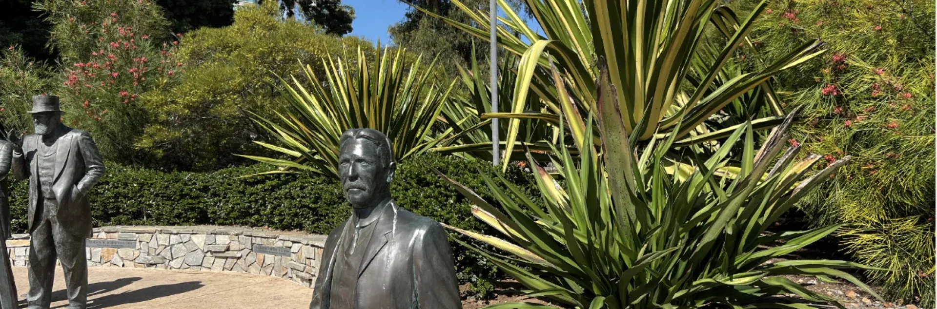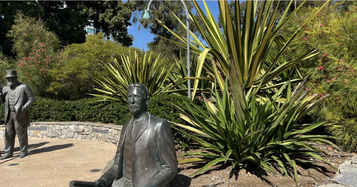 Near Balboa Park’s west entrance on Laurel Avenue, the demonstration garden showcases succulents and water-wise plants, as well as bronze sculptures honoring San Diegans instrumental in the park’s creation: Ephraim Morse, Alonzo Horton, and George White Marston.