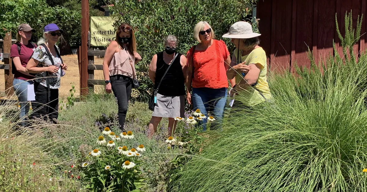 A group of people learning about the master gardener demonstration garden