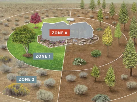 ZONE 0 Non-Combustible Zone (0-5 ft) is the area directly adjacent to your home and/or other structures (including sheds, garages, wooden decks, and fences).