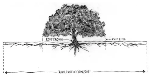 5. Ensure proper drainage to avoid saturated soils near tree trunk. Do not raise or lower the surrounding soil lines of mature oaks. Do not compact soil.