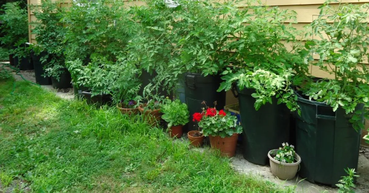 container gardening, pots by the side of the house