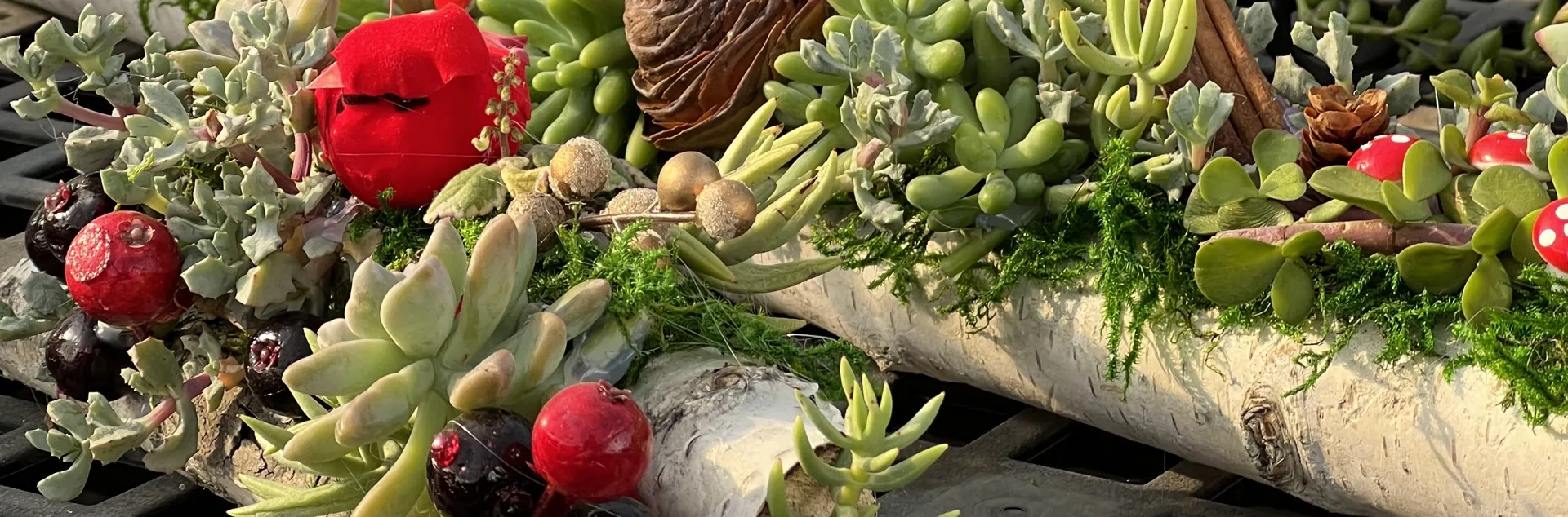 Come and learn how to make a succulent yule log and other succulent décor, as we talk about caring for, decorating, and designing with succulents. Bring your questions about succulents and we will do our best to answer them.