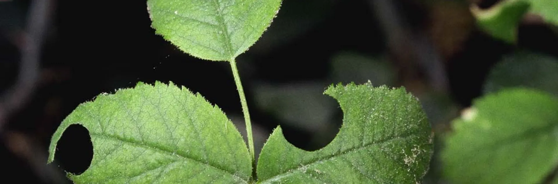 The circles cut out of the leaf pictured above were done by leafcutting bees. They use the leaf material to line their nests. There's nothing wrong with the plant!