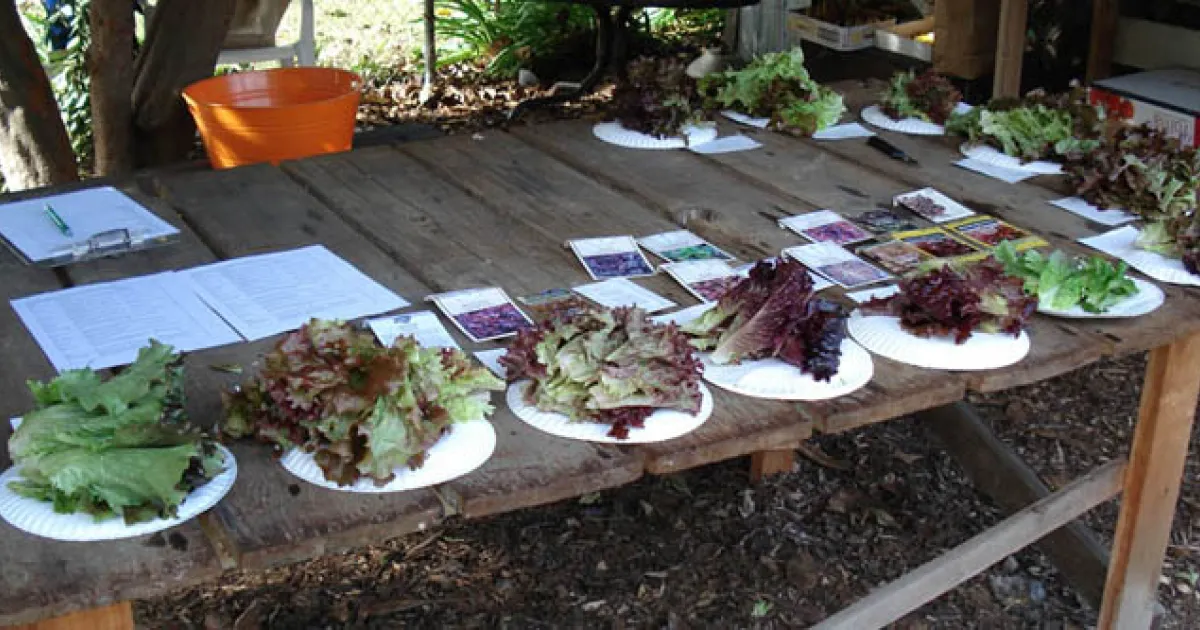 We compared thirteen varieties of red looseleaf lettuce (Latin name, Lactuca sativa) to determine the best production and taste. We grew them in the winter, starting the seeds in September and harvesting the lettuce from November through February.
