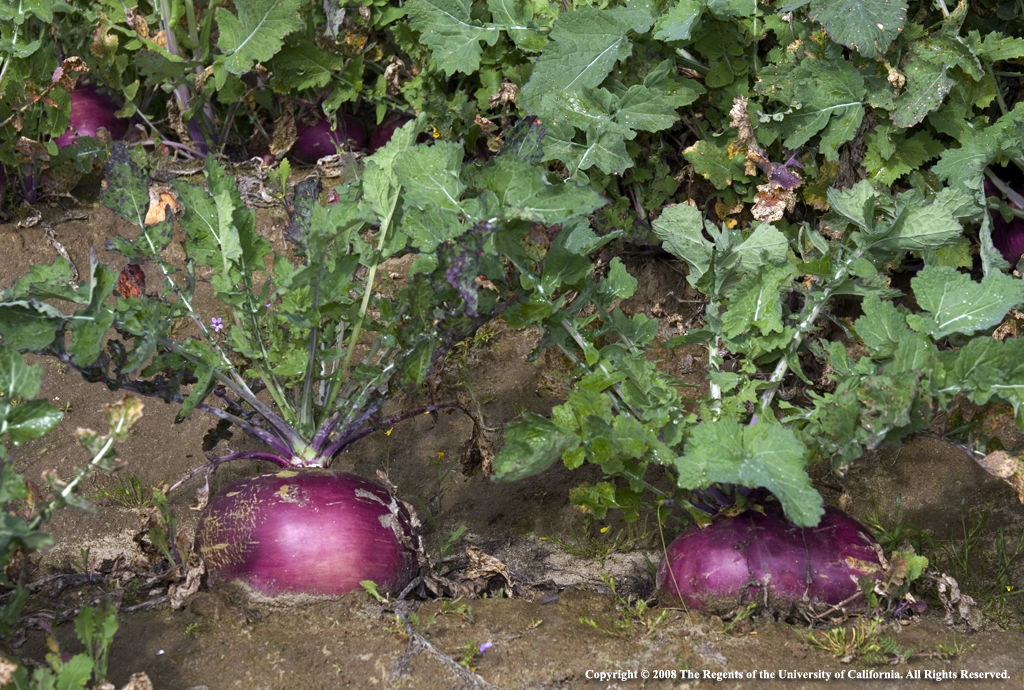 Turnips are a cool season root vegetable that grow best between 50–65°F. Higher temperatures may produce strong-flavored roots. The leaves are also edible and are referred to as "turnip greens".