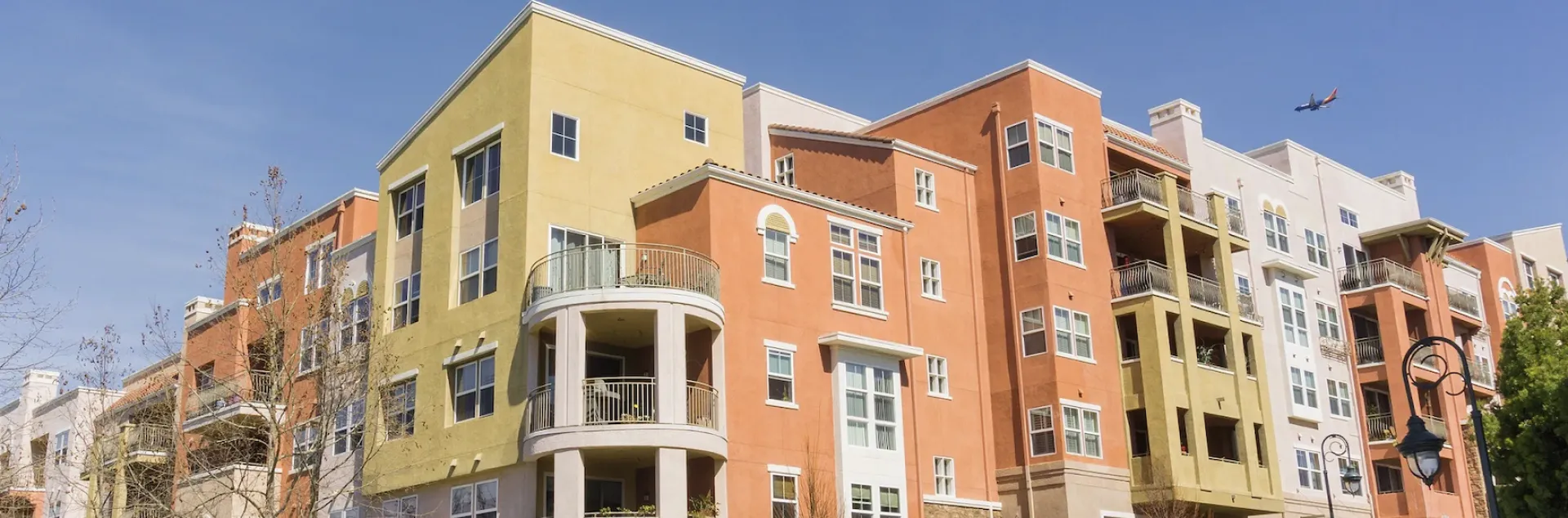 Pink and yellow apartment complex