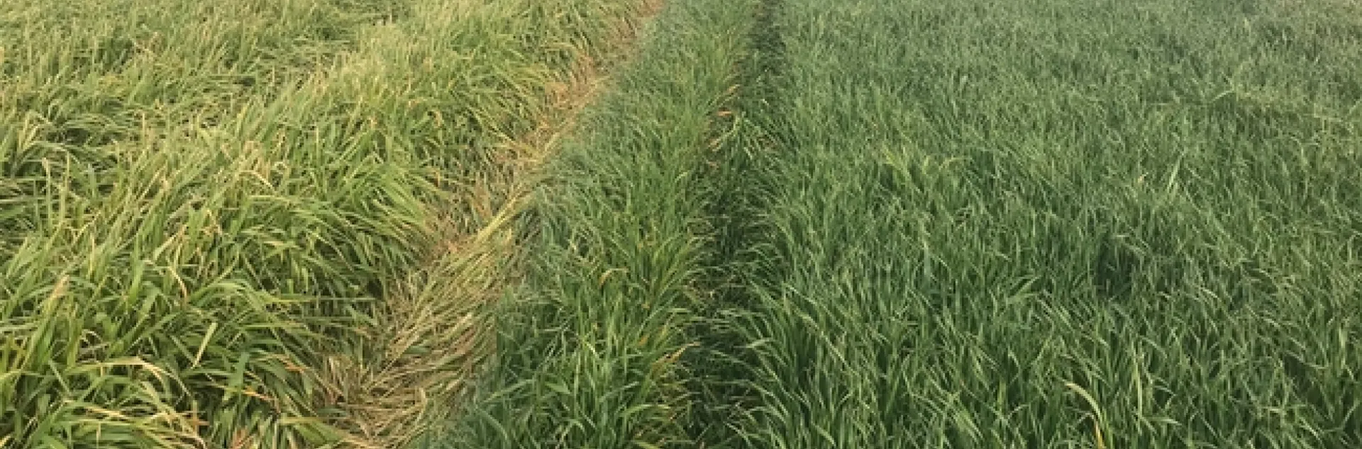Figure 1. Improved UC lines (right) avoid early frost damage observed on Montezuma (left) since they head out later.