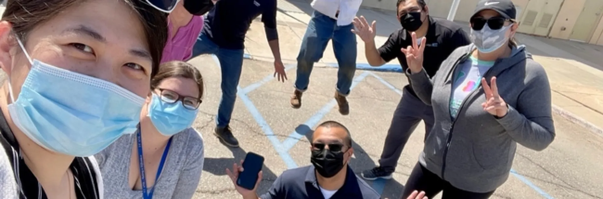 The CalFresh Healthy Living, UC and Farm Smart teams delivered garden kits to preschools. From left, Yu Meng, UCCE Youth Family and Community Advisor; Stacey Amparano, Farm Smart Manager; Stephanie Collins, Farm Smart Outreach Assistant; Chris Gomez Wong, CalFresh Community Education Supervisor II; Vincent (contract gardener), Paul Tabarez, CalFresh Community Education Supervisor II; Rigo Ponce, Community Education Specialist II-CalFresh; and Martha Lopez, CalFresh Community Education Specialist II.