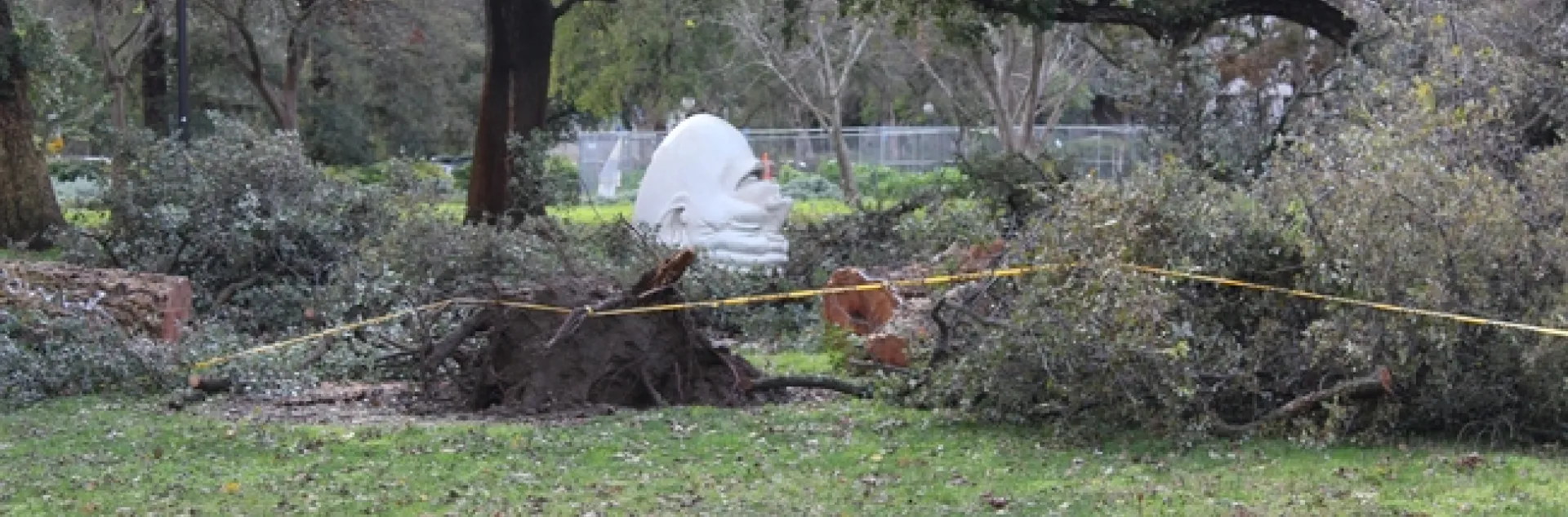 I stopped in at UC Davis Sunday. Similar to other parts of California, uprooted trees lay in disarray from last Tuesday. Irrigation plumbing and lighting were damaged as well. Think of what those trees know about the formation of campus from the days of Emil Mrak to today. It's sad to see these trees toppled. Imagine the sound of such an event! For anyone who has been around a tree of this size falling, you certainly know it's not a quiet activity. The good news is no one was injured in the process.