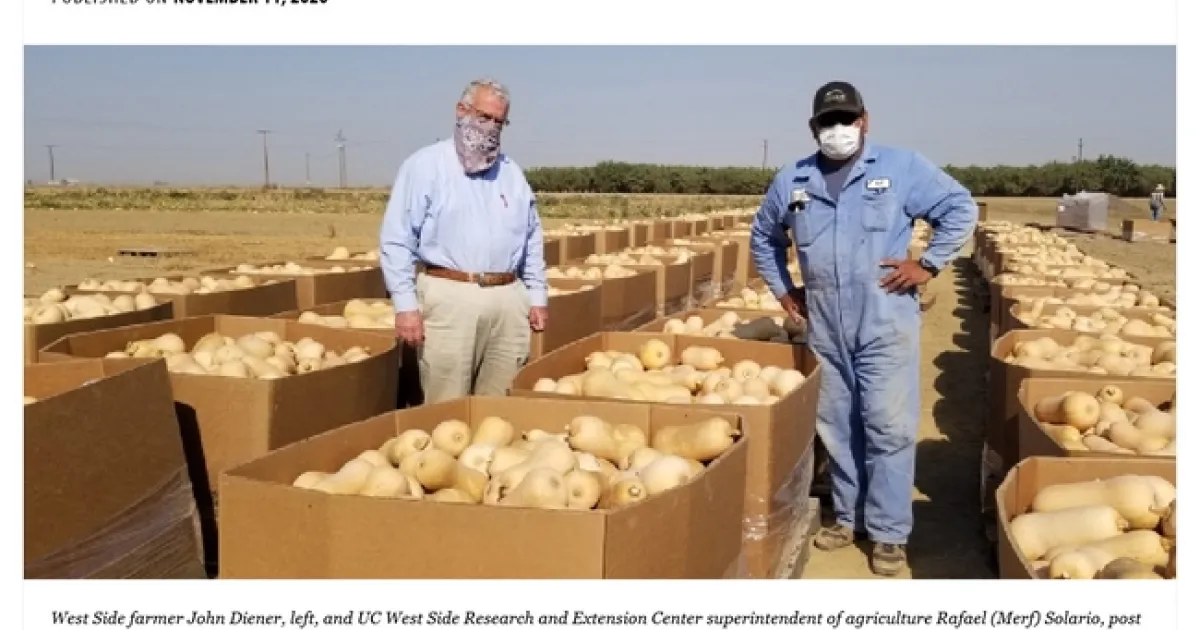 Jeff Mitchell and West Side REC partner with a local grower to donate butternut squash to the Central California Food Bank (from Morning Ag Clips)