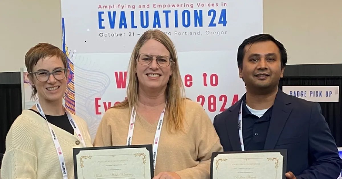 UC ANR's evaluation team received the Excellence in Extension Evaluation Training Team Award from the Extension Education Evaluation Topical Interest Group at the October 2024 American Evaluation Association Conference.