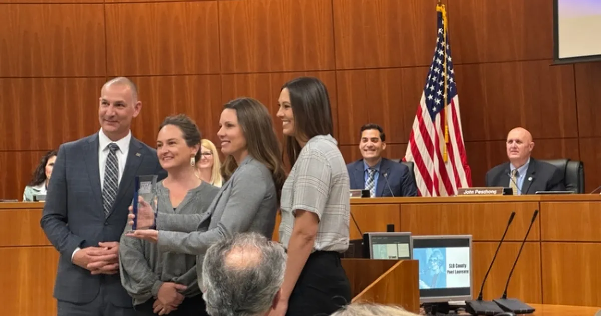 A representative of the California State Association of Counties (CSAC) presented the County of San Luis Obispo with the 2023 CSDC Challenge Award during the Board of Supervisors meeting on April 9.