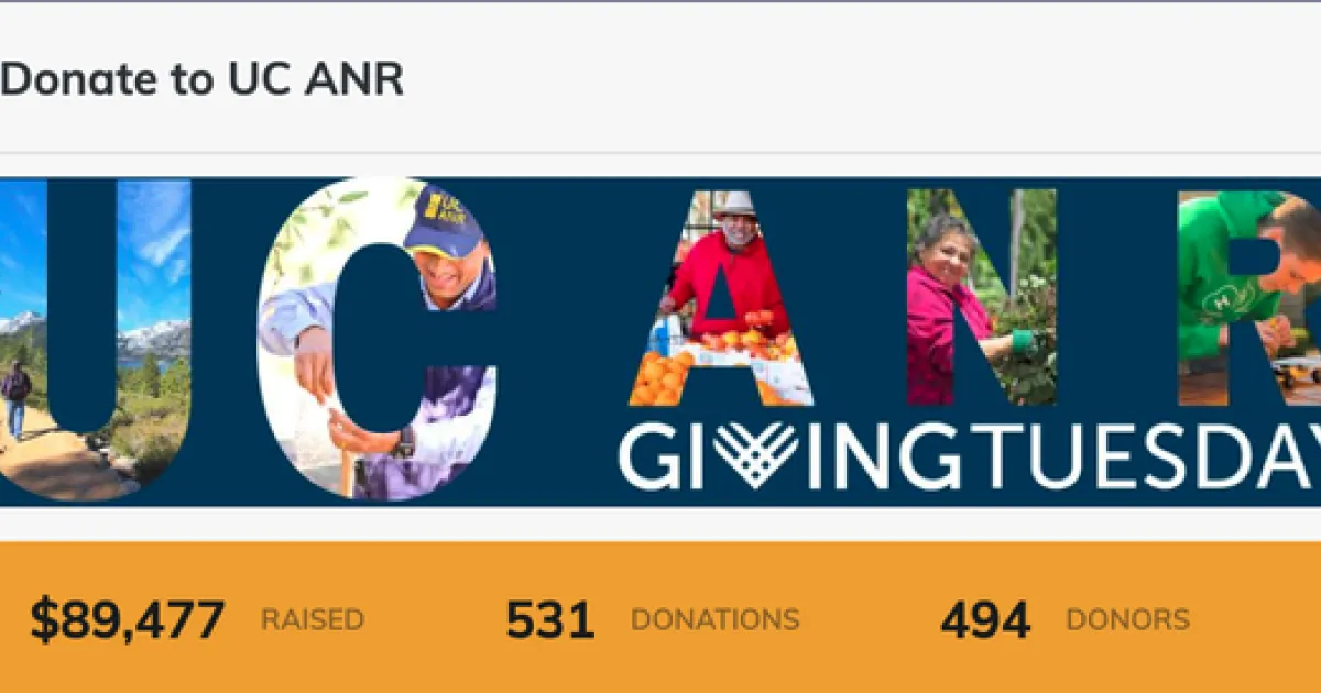 As of 11:59 p.m. on Nov. 29, at the conclusion of GivingTuesday 2022, donors gave $89,477 for UC Cooperative Extension and the statewide programs, institutes and research centers that make up UC ANR.