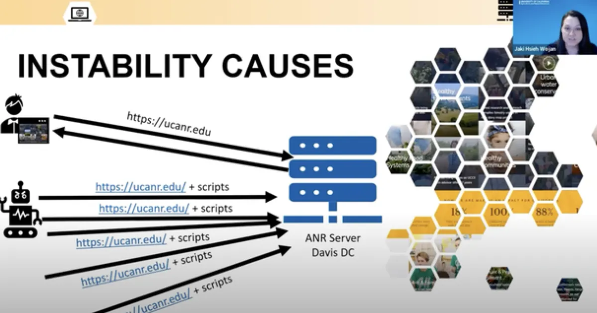 At UC ANR's July Town Hall, Jaki Hsieh Wojan, UC ANR's chief information security officer, explained ANR's recent website and portal issues and the steps being taken to solve them. Below are questions that were asked during the town hall.