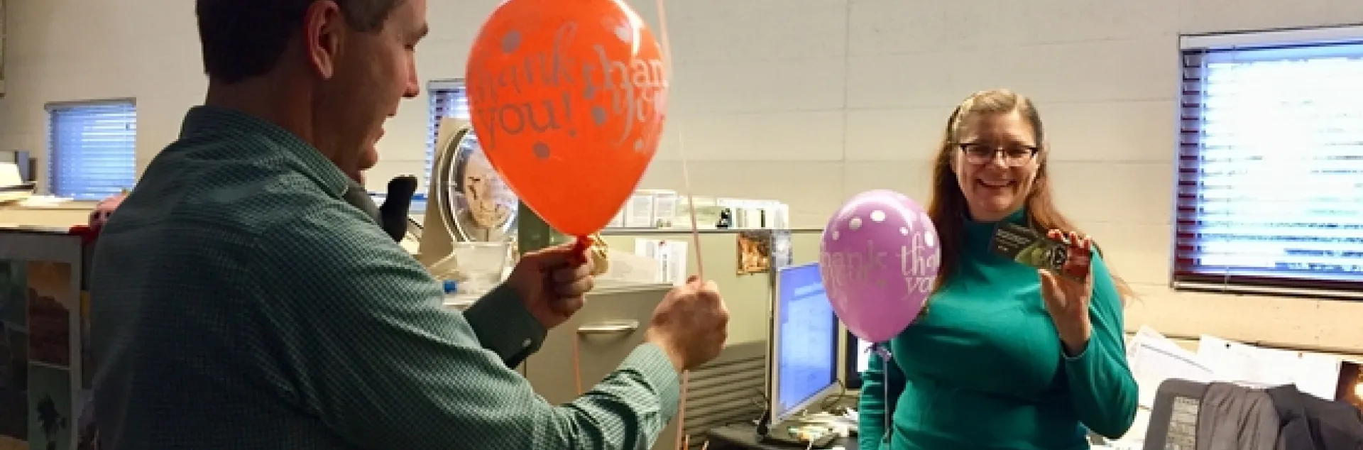 The staff engagement in the campaign was bigger and better than ever before thanks in part to fun incentives. As a token of appreciation, members of Development Services delivered balloons to donors in the ANR building in Davis.