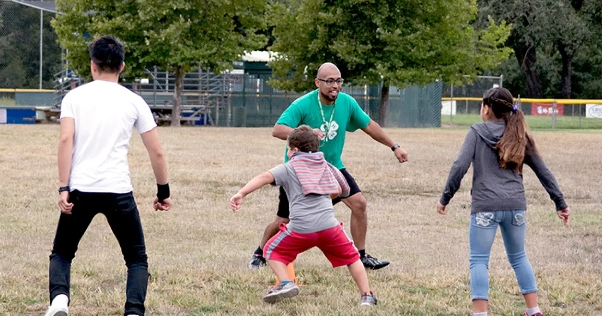 4-H summer camp participants exercise.