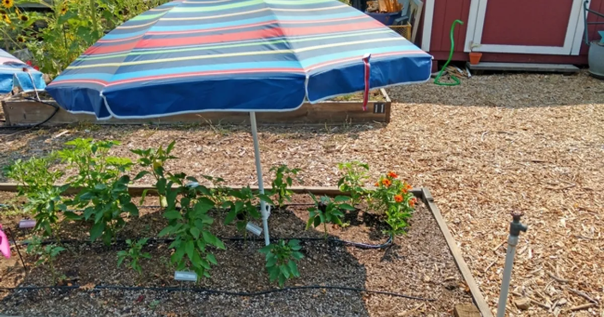 - A patio umbrella, bed sheets or landscape shade cloth suspended on the sunny side of a plant will shade tender growth on hot days.