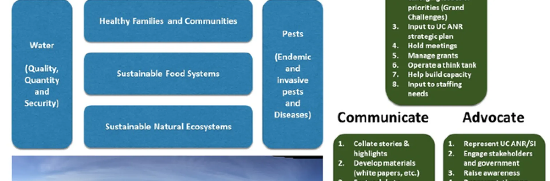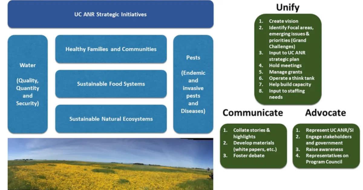 UC ANR Strategic Initiatives: Building our Research and Extension umbrella by Unifying, Communicating and Advocating.