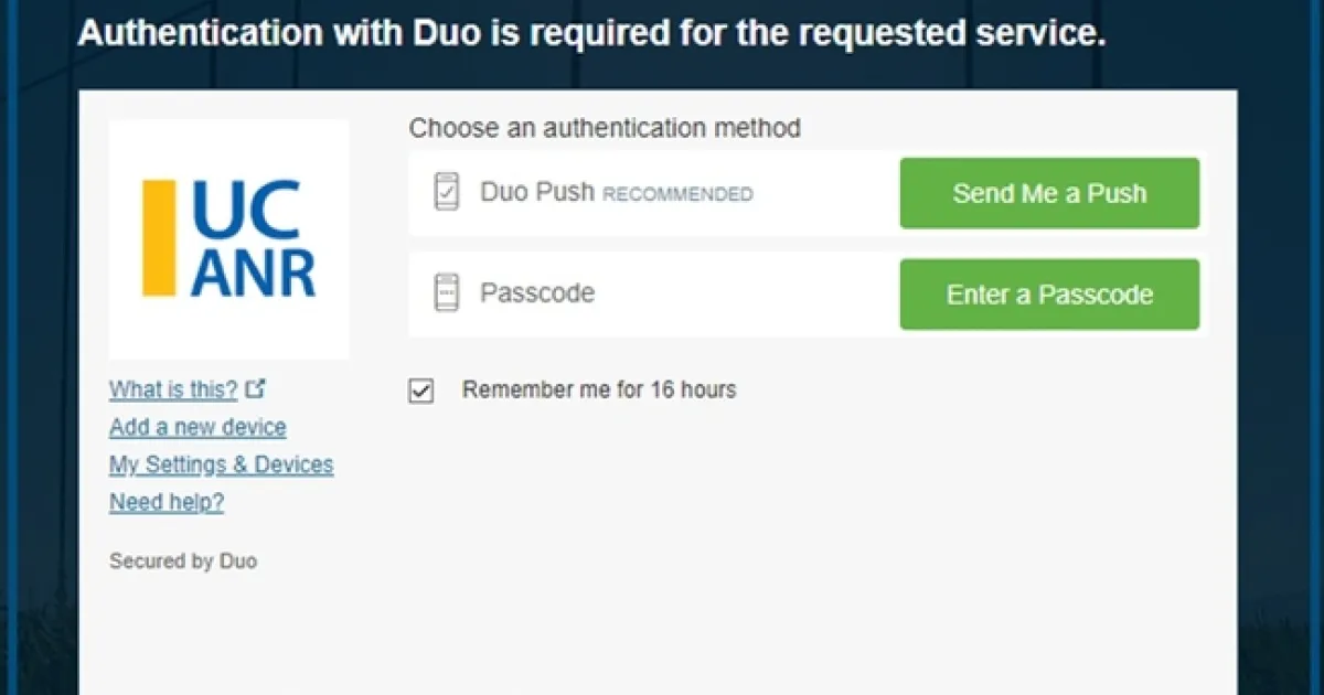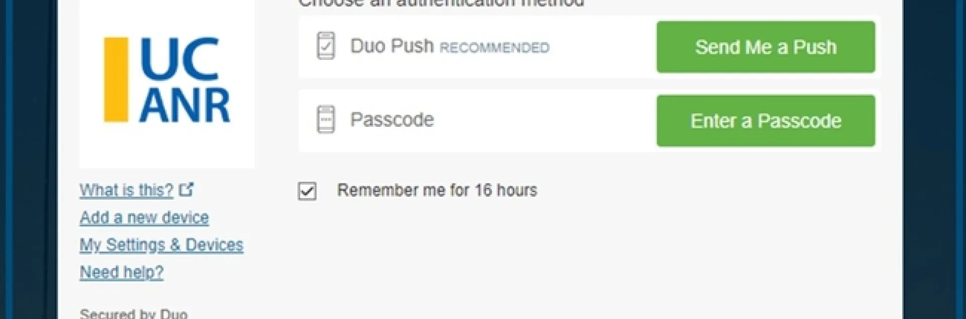 Duo, UC ANR's multi-factor authentication app, is updating its login screen on April 7, 2024. UC Davis made this same Duo prompt change late last year.