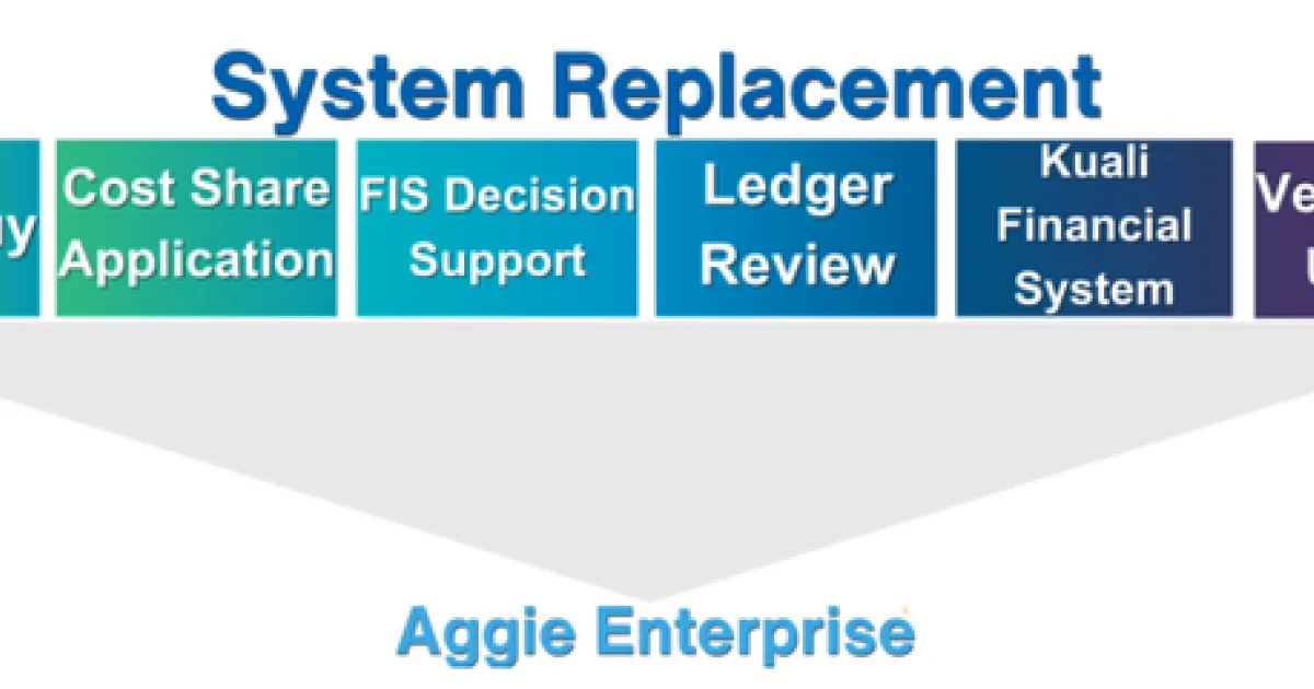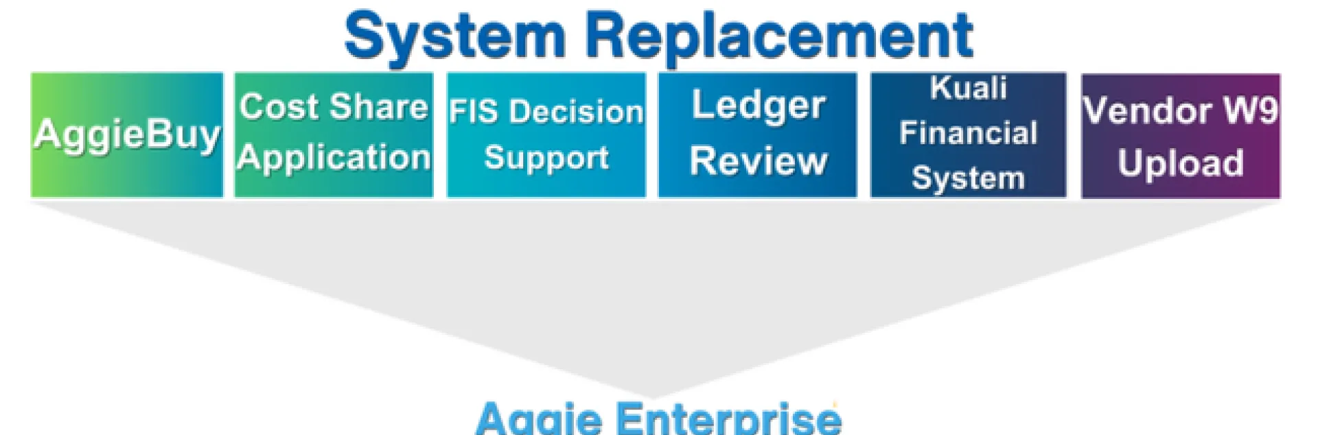 As you may have heard, ANR will be migrating from Kuali (KFS) to the new Aggie Enterprise system in January 2024. Some of the systems being replaced include Kuali Financial System (KFS), AggieBuy and FIS Decision Support.