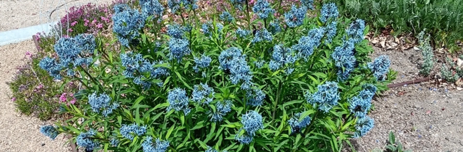 Amsonia, a plant native to the Northeastern USA, seems to be little known in the West. They are commonly known as bluestars on account of the shape and color of their flowers. I have never found it in local nurseries, but I have always been curious to find out how it would do in the Eastern Sierra since it is said to be hardy in USDA zones 3-11.
