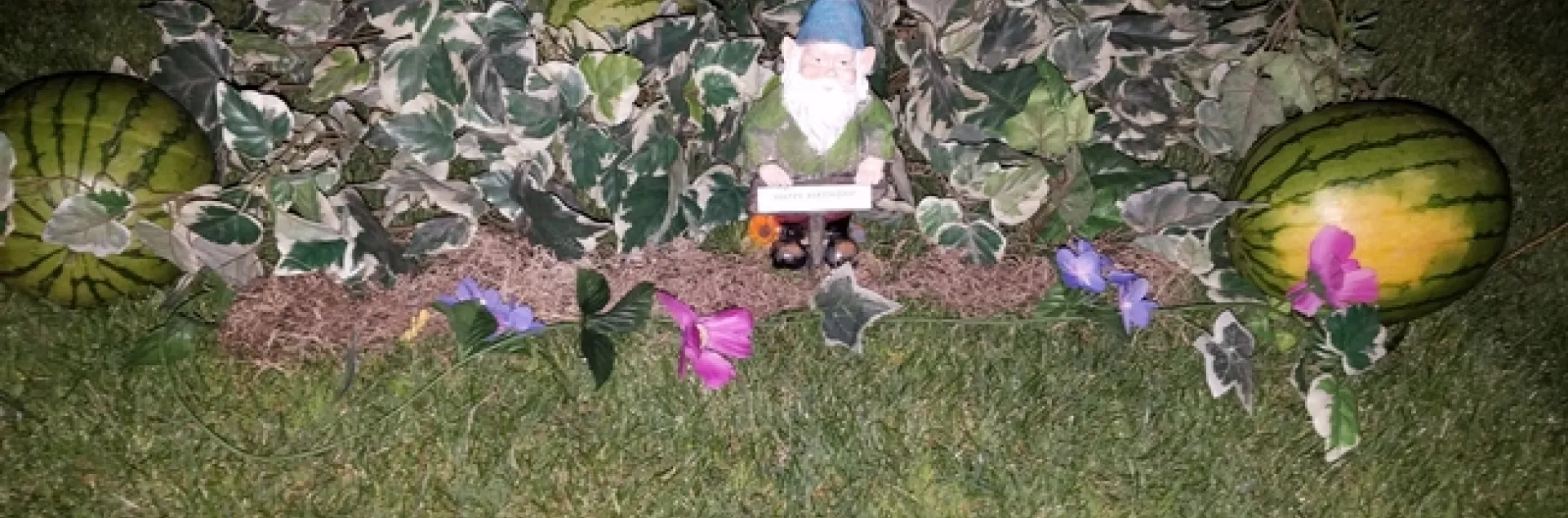 I come from a family of practical jokers. My dad loves to prank my children, and they love to get their revenge whenever they can. So when my dad's birthday came around this year, my kids and I took a page from Whitney's book, and plotted the perfect gardening practical joke. My dad hates watermelon and so my daughter suggested we put a watermelon garden in his yard. We found the fake vines with leaves and garden gnome at the thrift store and new Family Dollar in town for less than $10 altogether. All that was left to buy was a few mini watermelons and voilà, we had an instant watermelon garden! We got up at 4:30 A.M. the morning of his birthday and stealthily tip-toed into his backyard planting our prank garden into the middle of his pristine lawn. Now, the most fun was his response. He took pictures and posted them on social media, texted family and friends, and grilled every suspect until my daughter finally caved under the pressure two days later. My mom said, “He really got a big kick out of that!”