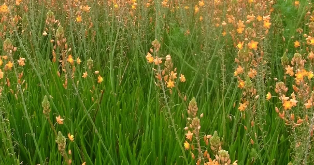 Cape balsam (Bulbine frutescens) and California poppy (Eschscholzia californica; in back of photo)