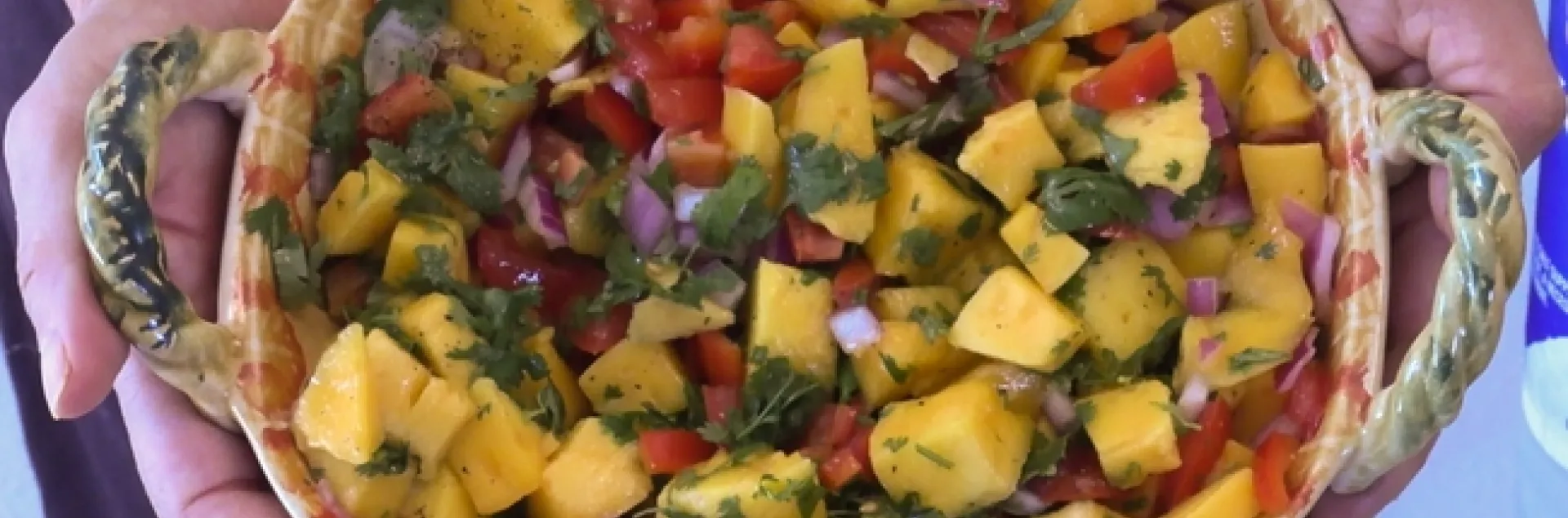 En la cocina mexicana, la más popular en los Estados Unidos predominan los sabores extremos desde lo picante del chile que le da un toque especial a las salsas hasta el ácido del limón en el pico de gallo. Precisamente, la ensalada de mango es una especie de pico de gallo a la que se le añade el suculento sabor tropical del mango y es una de las recetas favoritas del programa de nutrición EFNEP de la División de Agricultura y Recursos Naturales que tiene el propósito de enseñar a las familias de bajos ingresos a comer saludable y llevar una vida activa.