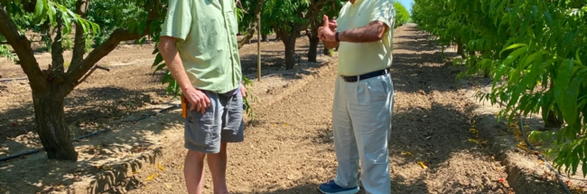 En un huerto experimental a pocos kilómetros al oeste del campus de UC Davis, Thomas Gradziel arrancó una nectarina casi madura de uno de los árboles. Sacó una navaja y cortó jugosos trozos para que Carlos Crisosto los probara. Ambos son expertos en cultivos hortícolas del Departamento de Ciencias Vegetales de la UC Davis, y a los dos les encantan los duraznos.