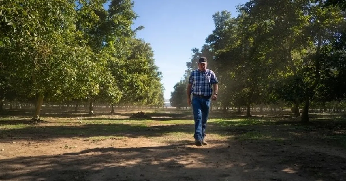 “Te puedes dar cuenta solo con mirar ese block que los árboles están más sanos”, manifestó Crain, parado debajo de un dosel de árboles frondosos y verdes. “Y, estamos empezando a ver una mayor producción y calidad de nueces”.