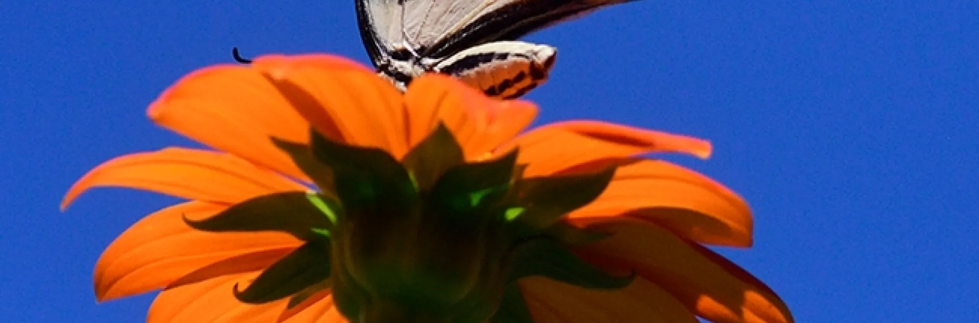 You teeter, then totter, then take off. You touch down on another Tithonia.