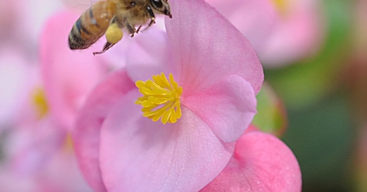 We told Extension apiculturist Eric Mussen, a noted authority on honey bees and bee behavior--and a member of the UC Davis Department of Entomology faculty--of the bee-begonia encounter. "Bet she didn't come back," he said.