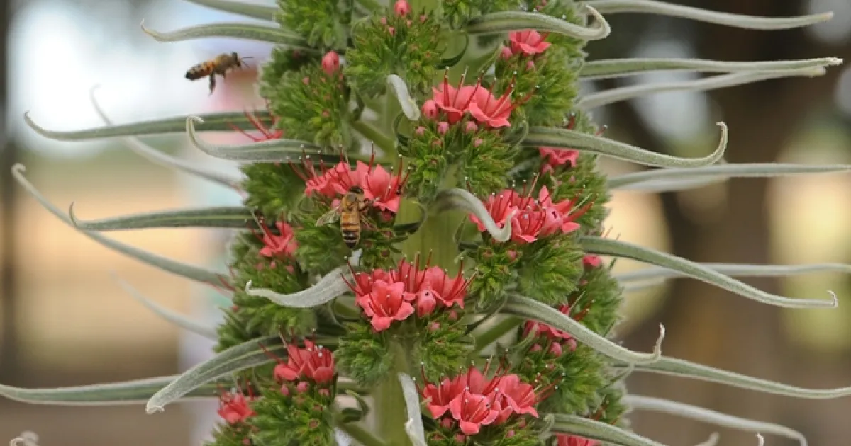 The two towers of jewels (Echium wildpretti) are blooming in the Häagen-Dazs Honey Bee Haven, the half-acre bee friendly garden next to the Harry H. Laidlaw Jr. Honey Bee Research Facility, UC Davis.