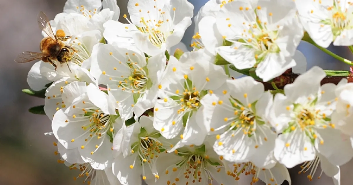The trees that form "Orchard Alley" are blooming. You'll see almonds and plums flowering, and soon, apples.