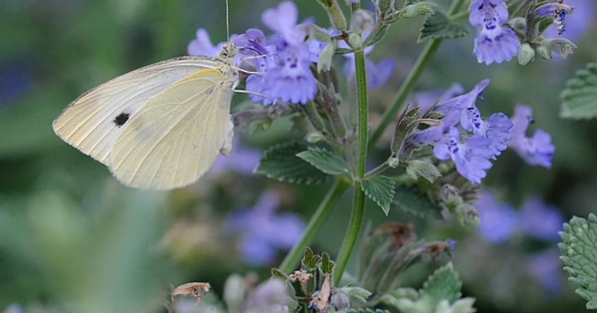 Cabbage white butterfly, Pieris rapae, nectaring on catmint. (Photo by Kathy Keatley Garvey)