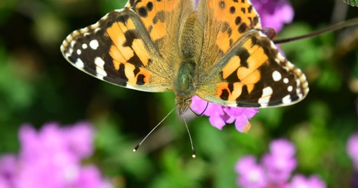 The Gulf Frit challenged the Painted Lady in a game of "It's-mine; I-was-here-first." The Gulf Frit won but the Painted Lady returned.
