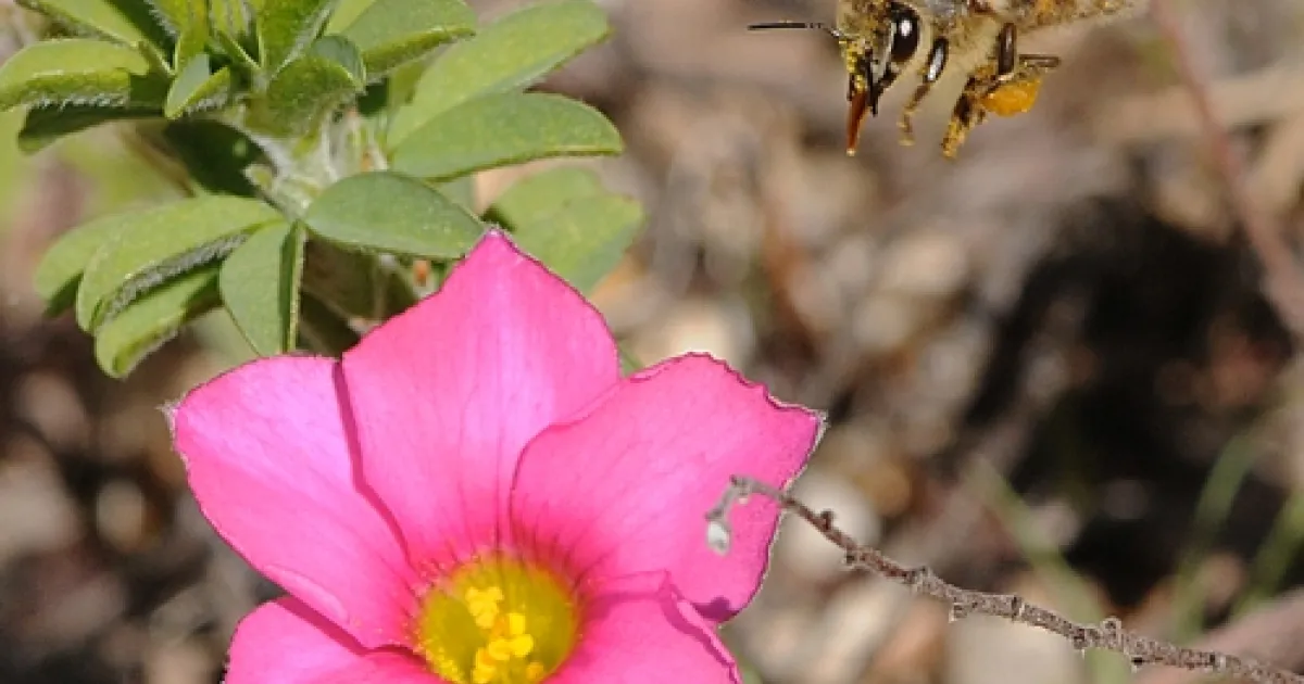 A recent visit to the UC Berkeley Botanical Garden found honey bees making a...yes...beeline...for the pink oxalis (Oxalis herta), a native of South Africa.