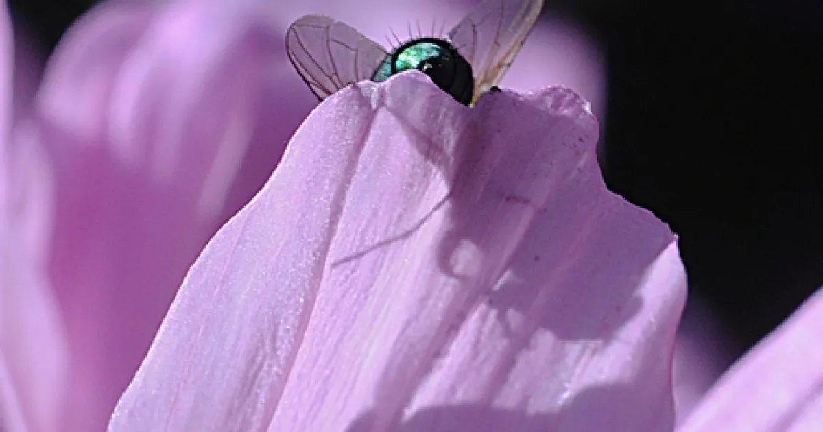 Last weekend I photographed a blow fly that landed on my pink-petaled cosmos. Did it for Bob. Honest.