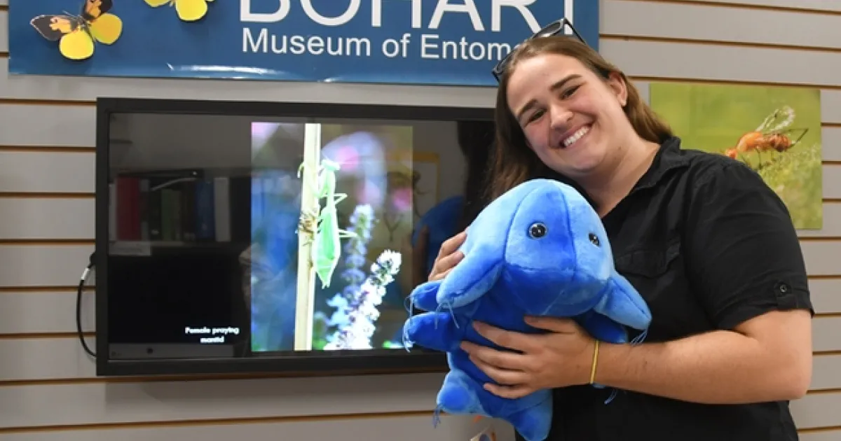 (Editor's note: The Bohart Museum of Entomology will host an open house, themed "Extreme Insects: Fire and Ice," from 1 to 4 p.m., Sunday, Aug. 19 in Room 1124 of the Academic Surge Building on Crocker Lane, UC Davis campus. It is free and family friendly. More information is available on the website or by contacting (530) 752-0493 or emailing bmuseum@ucdavis.edu. UC Davis student and Bohart associate Emma Cluff, pictured, is helping coordinate the event.)