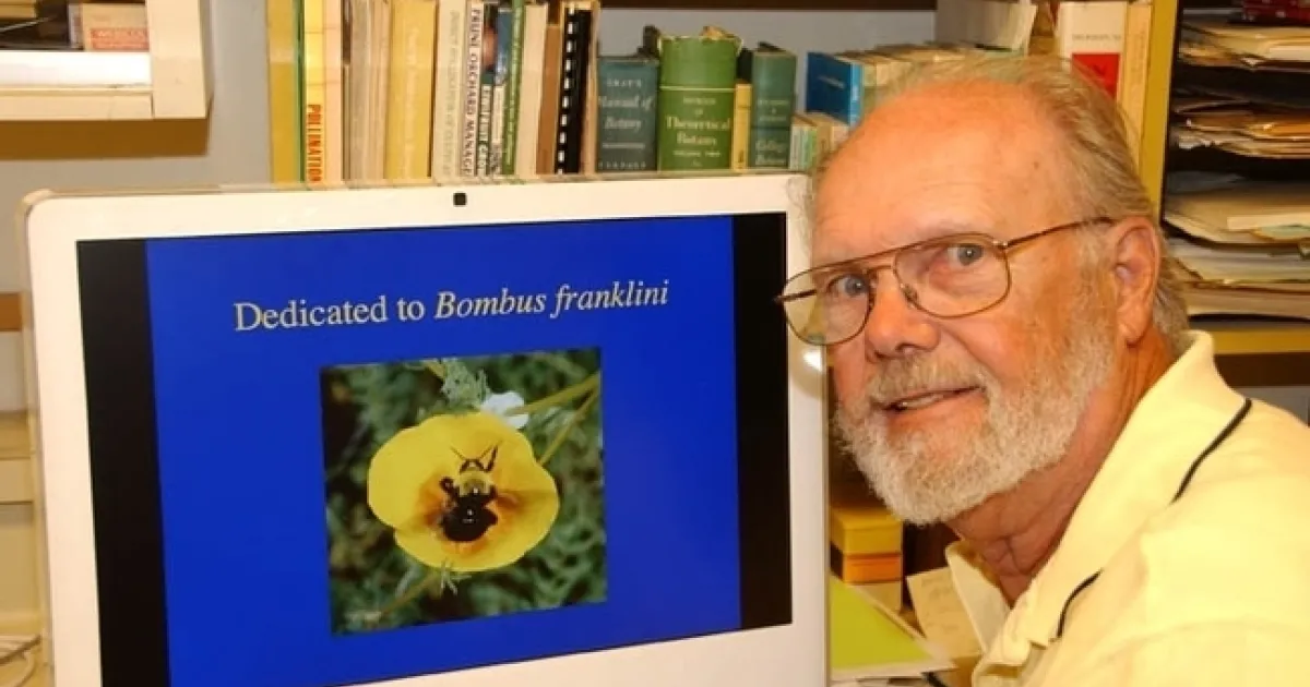 Dr. Thorp was an authority on the critically imperiled Franklin's bumble bee (Bombus franklini), which he began monitoring in 1998 in its narrow distribution range of southern Oregon and northern California. He was instrumental in placing Franklin's bumble bee on the Red List of Threatened Species of the International Union for Conservation of Nature and Natural Resources (IUCN). In 2010, he and the Xerces Society for Invertebrate Conservation petitioned the U.S. Fish and Wildlife Service for it to be placed on the endangered species list. The U. S. Fish and Wildlife placed it on its proposed endangered species list on Aug. 14, 2019. (See Bug Squad blog.)